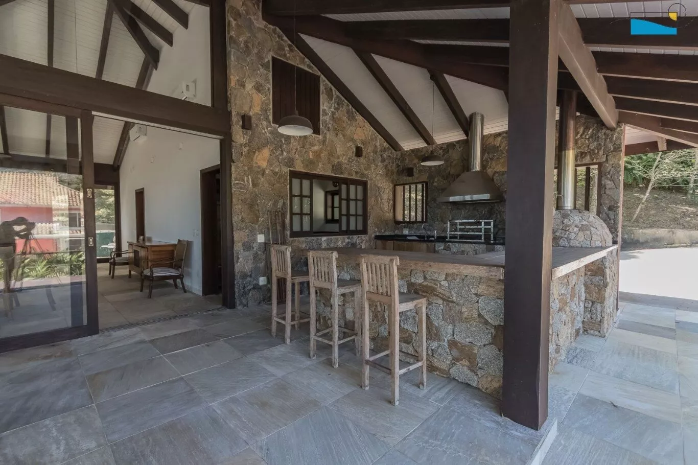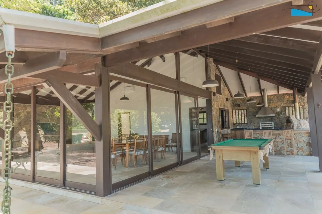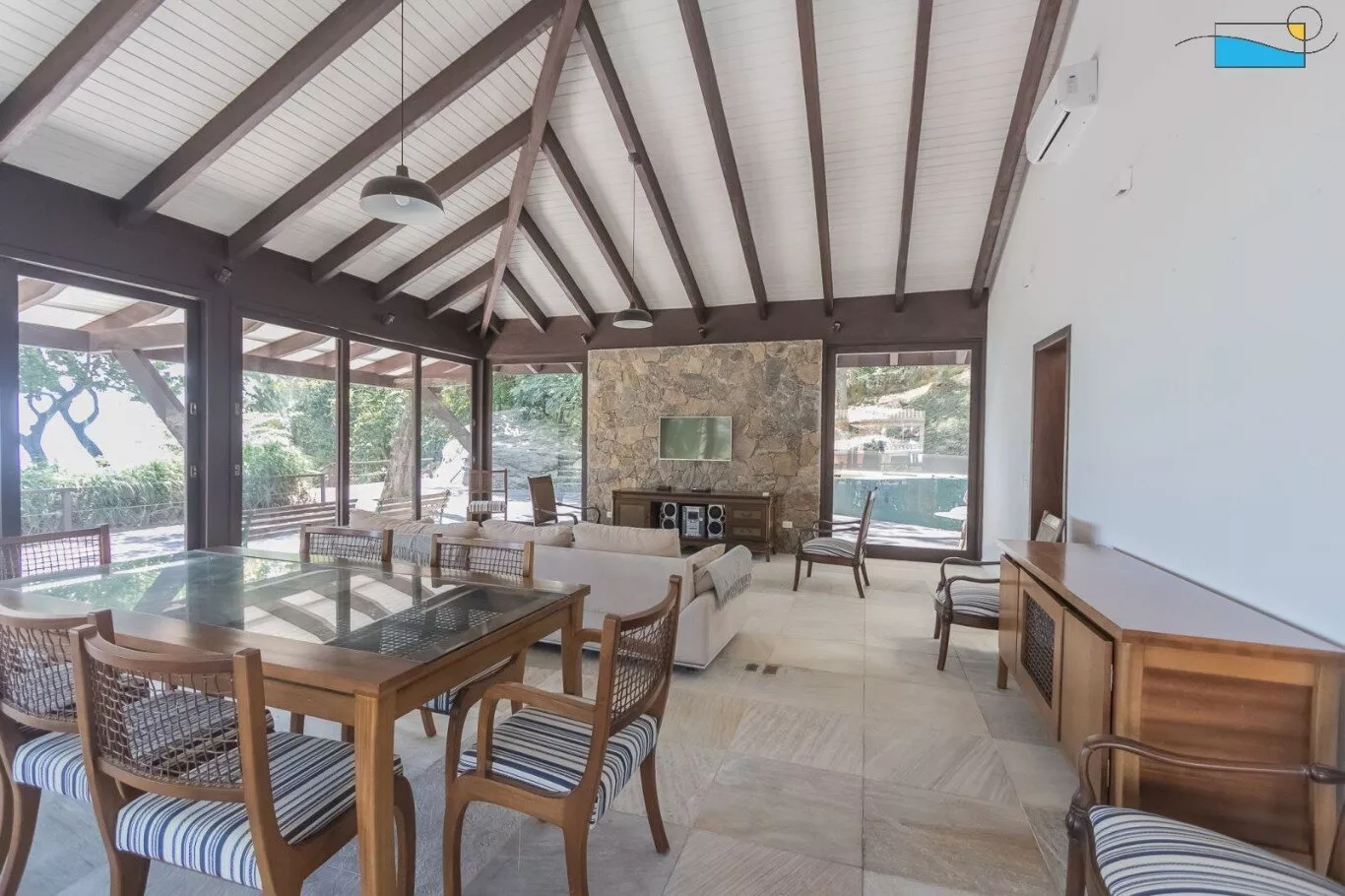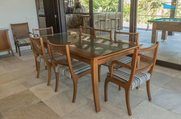 A sala é um convite à descontração, com TV para momentos de lazer e Wi-Fi para manter você conectado. E quando o sol se põe, a churrasqueira e a lareira são os cenários perfeitos para um jantar ao ar livre ou noites aconchegantes.