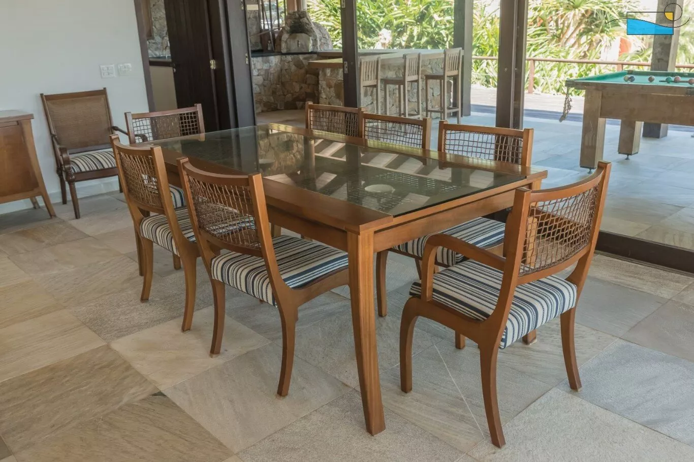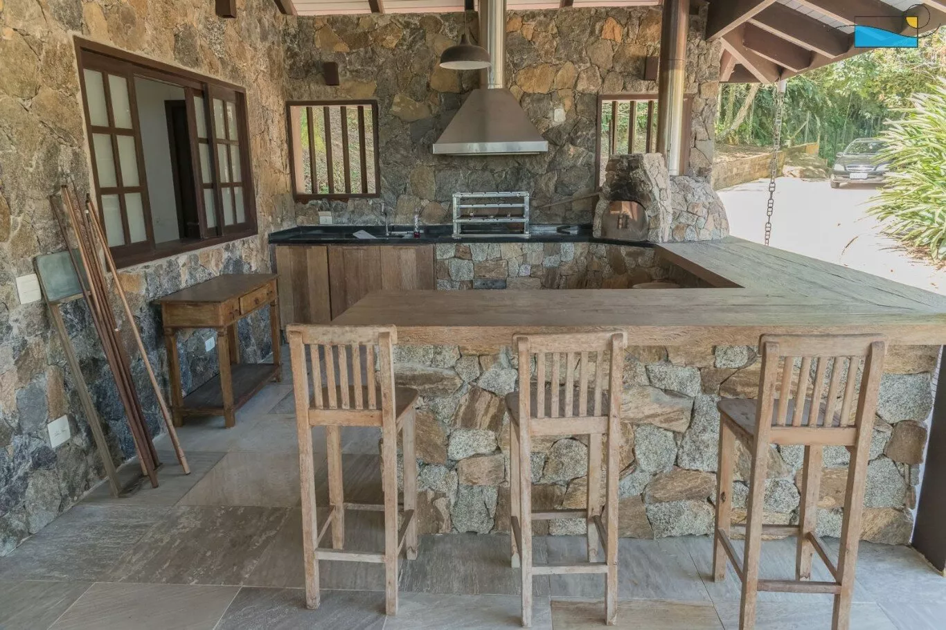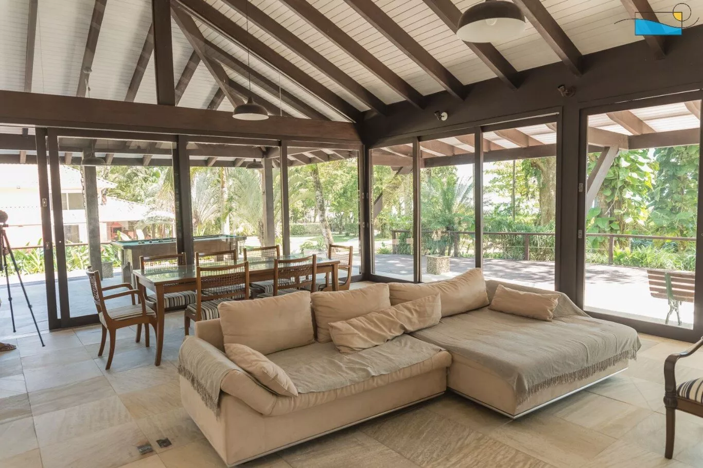 A sala é um convite à descontração, com TV para momentos de lazer e Wi-Fi para manter você conectado. E quando o sol se põe, a churrasqueira e a lareira são os cenários perfeitos para um jantar ao ar livre ou noites aconchegantes.